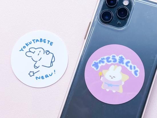 ステッカーはスマホに挟めるサイズの5.5cm。